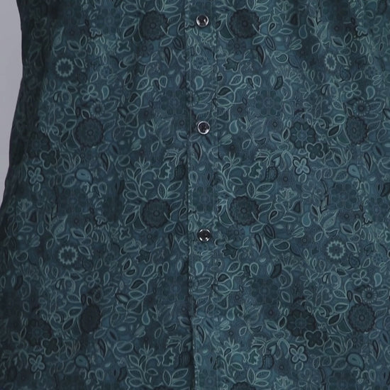 This regular fit shirt combines luxurious satin construction with striking green floral patterns, creating versatile elegance for both casual and dressy events.