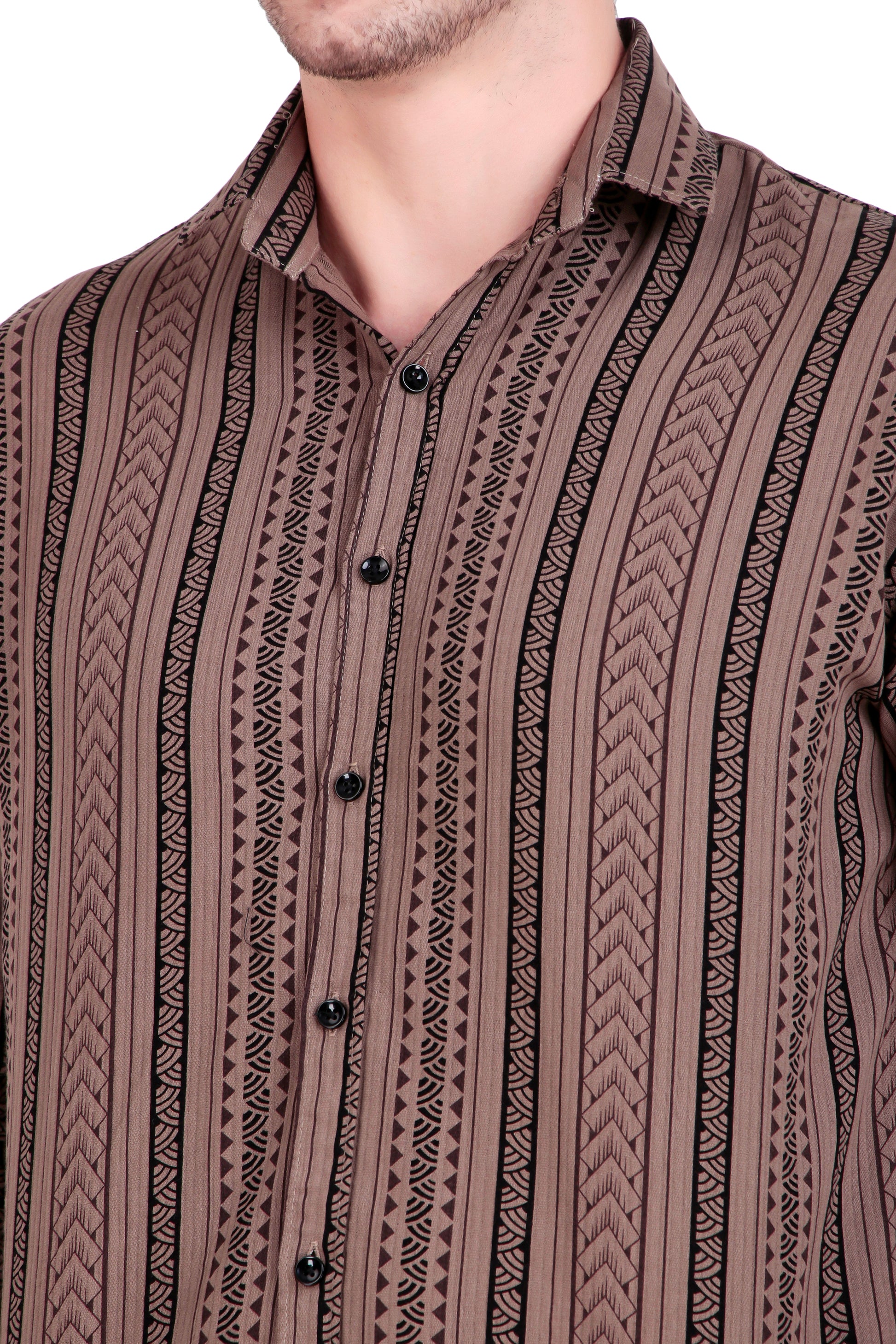 Men's Brown Cotton Striped Shirt With Detachable Hoodie